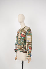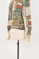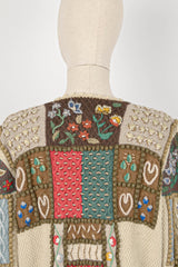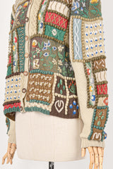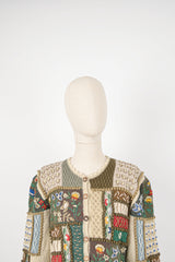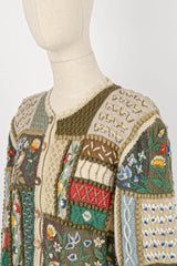 GINGERBREAD - 1990s Rare & Exquisite Wolkenstricker Patchwork Austrian Cardigan - Size M/L