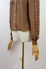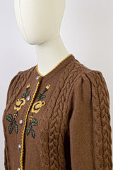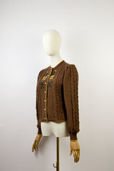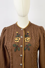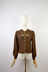 GOLDEN BLOOM - 1980s Vintage Lanamoden Brown Embroidered Austrian Cardigan - Size S/M