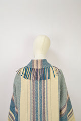 Meet COZY MOMENTS, a rare and enchanting treasure from 1970s Norway, lovingly crafted in pure Norwegian virgin wool. His delicate Western-inspired details and playful fringes whisper of wild landscapes and untamed charm.