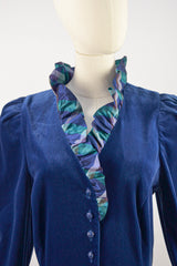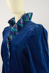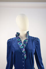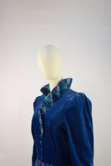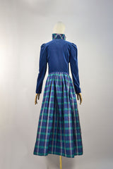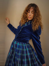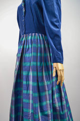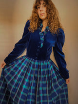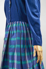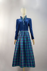 LAPIS LAZULI - 1980s Vintage Marion Donaldson Velvet and Check Dress - Size M
