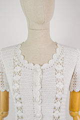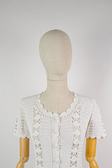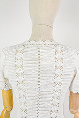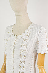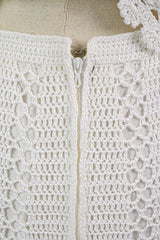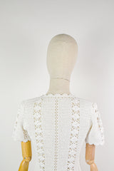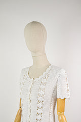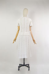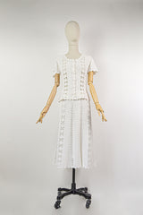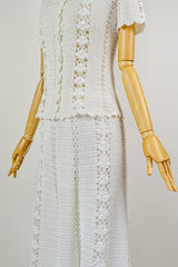 ODE TO CROCHET - 1960s Vintage Pristine White Crocheted Blouse and Skirt Set - Size S/M